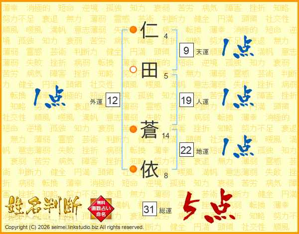 仁(4画)田(5画) 蒼(14画)依(8画)