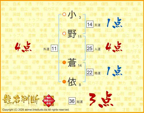 小(3画)野(11画) 蒼(14画)依(8画)