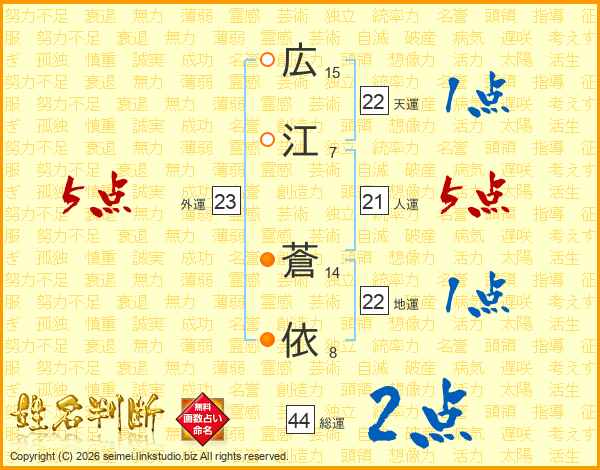 広江蒼依さんの総運は44画の2点!