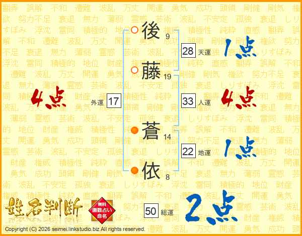 後藤蒼依さんの人運は33画の4点!