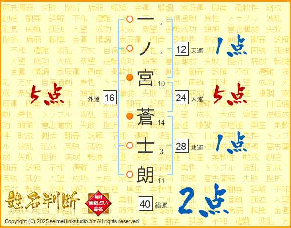 一ノ宮蒼士朗さんの外運は16画の5点!