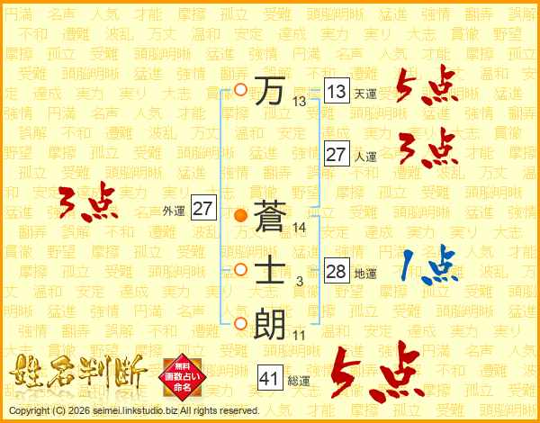 万蒼士朗さんの総運は41画の5点!