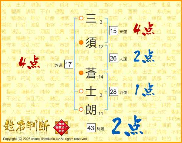 三須蒼士朗さんの総運は43画の2点!