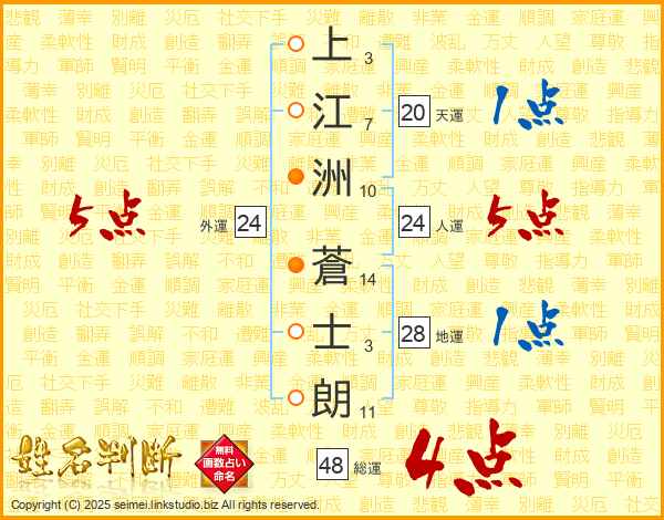 上(3画)江(7画)洲(10画) 蒼(14画)士(3画)朗(11画)