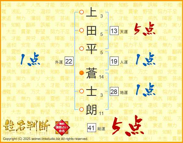 上田平蒼士朗さんの天運は13画の5点!