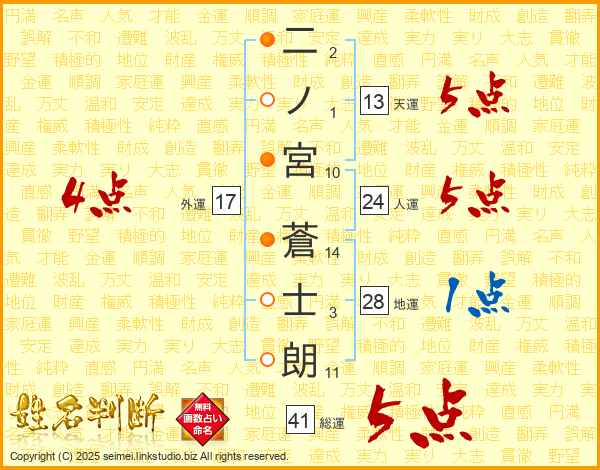 二ノ宮蒼士朗さんの総運は41画の5点!