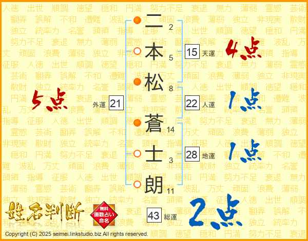 二本松蒼士朗さんの総運は43画の2点!