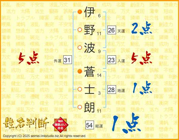 伊野波蒼士朗さんの総運は54画の1点!