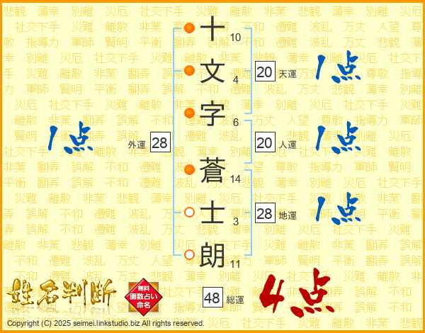 十(10画)文(4画)字(6画) 蒼(14画)士(3画)朗(11画)