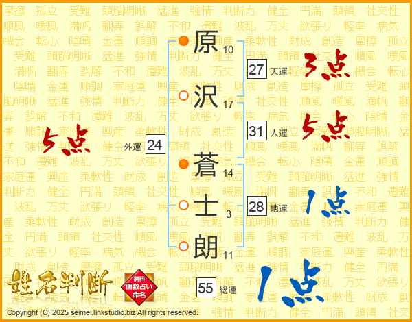 原(10画)沢(17画) 蒼(14画)士(3画)朗(11画)