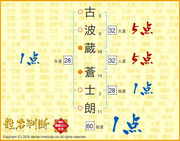 古(5画)波(9画)蔵(18画) 蒼(14画)士(3画)朗(11画)