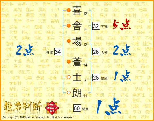 喜舎場蒼士朗さんの天運は32画の5点!