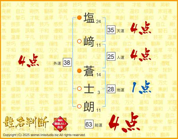 塩﨑蒼士朗さんの総運は63画の4点!