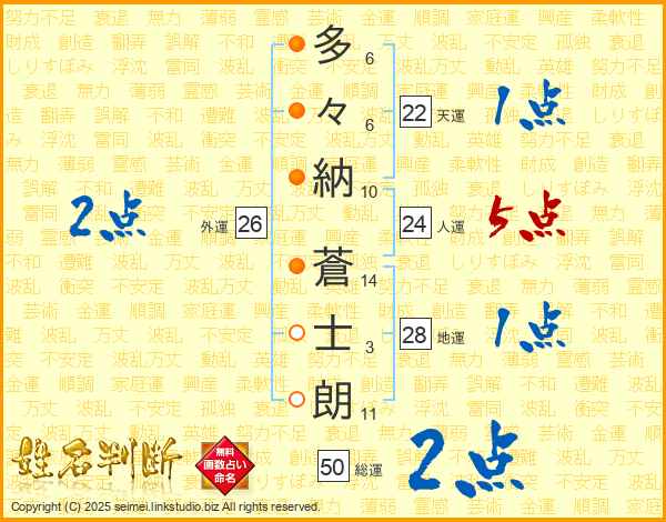 多(6画)々(6画)納(10画) 蒼(14画)士(3画)朗(11画)