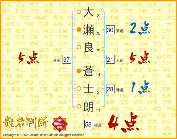 大瀬良蒼士朗さんの総運は58画の4点!