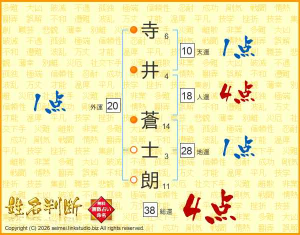 寺井蒼士朗さんの総運は38画の4点!
