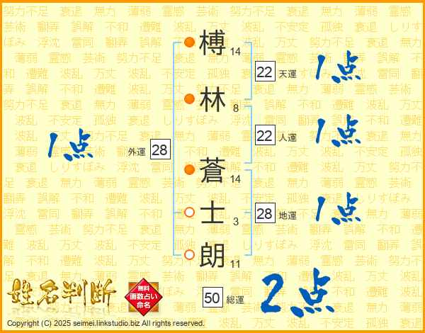 榑(14画)林(8画) 蒼(14画)士(3画)朗(11画)