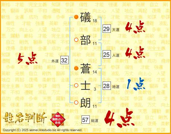 礒(18画)部(11画) 蒼(14画)士(3画)朗(11画)