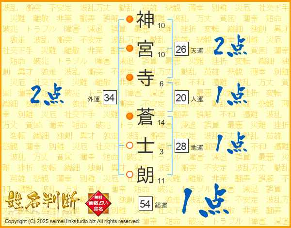 神宮寺蒼士朗さんの外運は34画の2点!