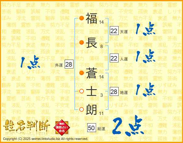 福(14画)長(8画) 蒼(14画)士(3画)朗(11画)