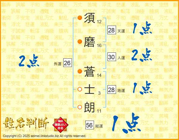 須(12画)磨(16画) 蒼(14画)士(3画)朗(11画)