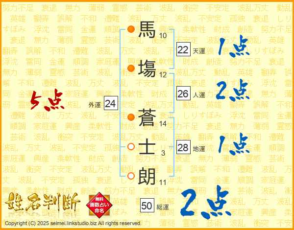 馬塲蒼士朗さんの天運は22画の1点!