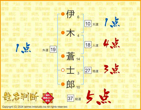 伊木蒼士郎さんの総運は37画の5点!