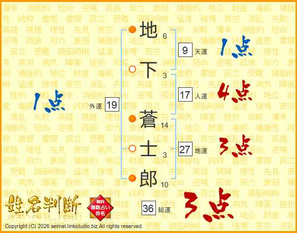 地下蒼士郎さんの総運は36画の3点!