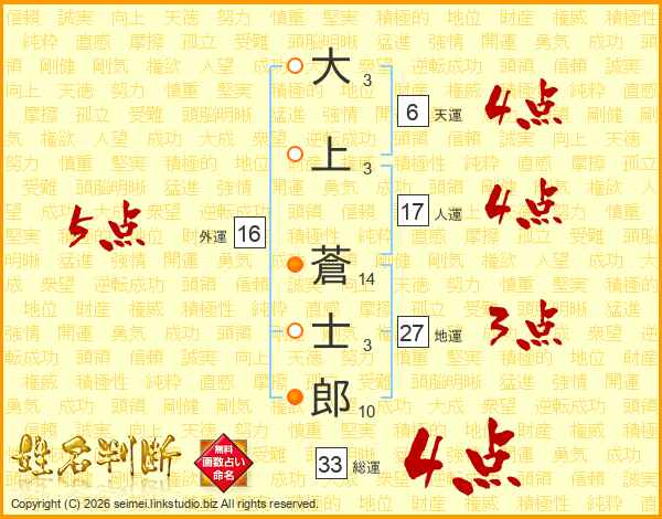 大(3画)上(3画) 蒼(14画)士(3画)郎(10画)