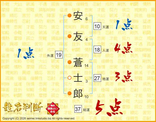 安友蒼士郎さんの総運は37画の5点!