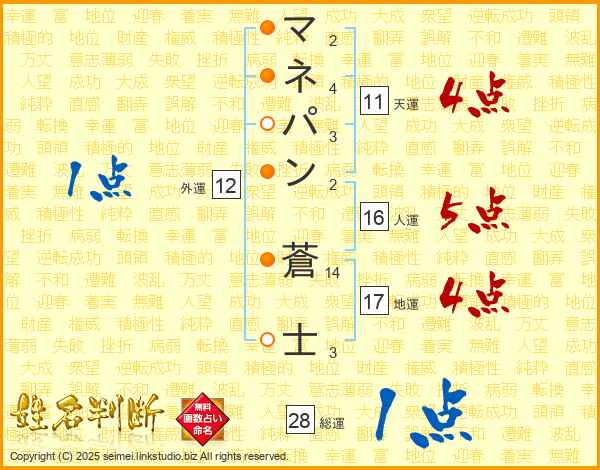 マ(2画)ネ(4画)パ(3画)ン(2画) 蒼(14画)士(3画)