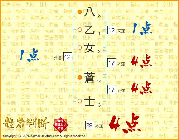 八乙女蒼士さんの総運は29画の4点!