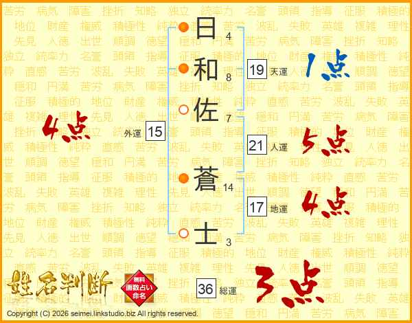 日(4画)和(8画)佐(7画) 蒼(14画)士(3画)