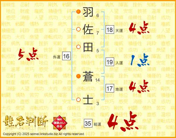 羽佐田蒼士さんの総運は35画の4点!