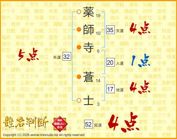 薬(19画)師(10画)寺(6画) 蒼(14画)士(3画)