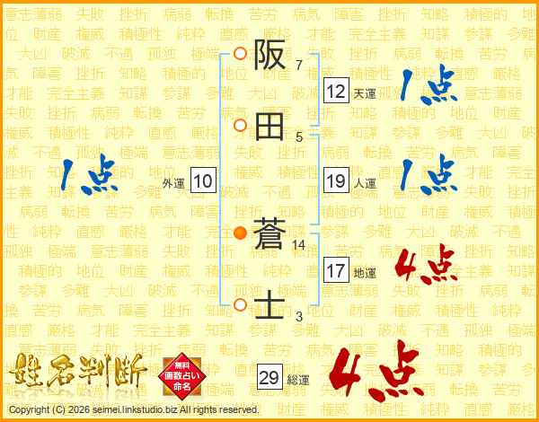 阪田蒼士さんの総運は29画の4点!