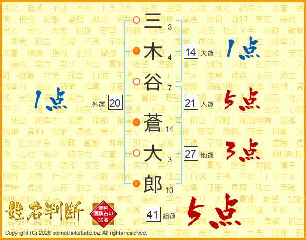 三木谷蒼大郎さんの総運は41画の5点!