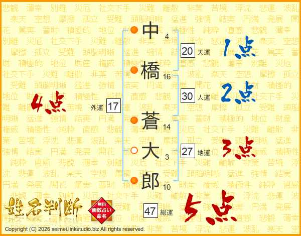 中橋蒼大郎さんの総運は47画の5点!