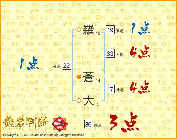 羅蒼大さんの人運は33画の4点!