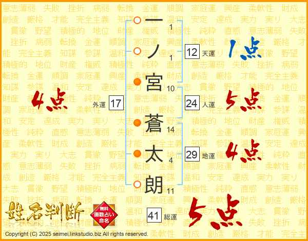 一ノ宮蒼太朗さんの総運は41画の5点!