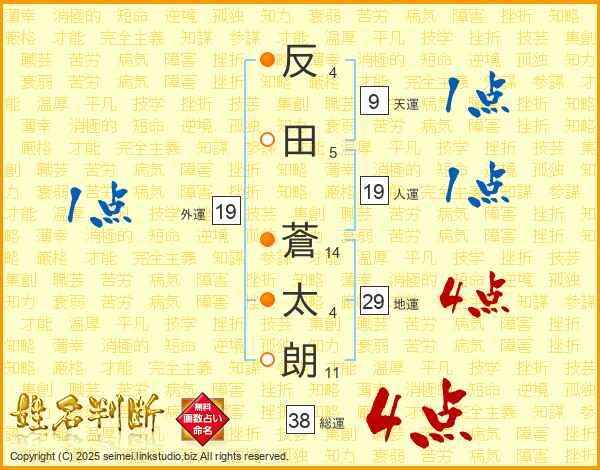 反(4画)田(5画) 蒼(14画)太(4画)朗(11画)