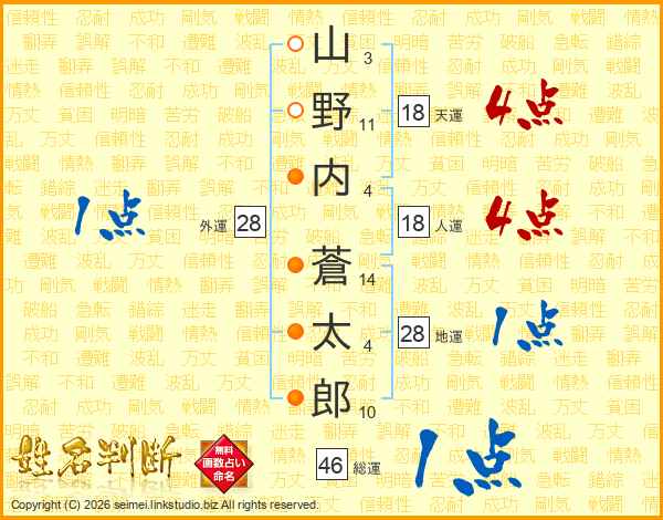 山野内蒼太郎さんの総運は46画の1点!