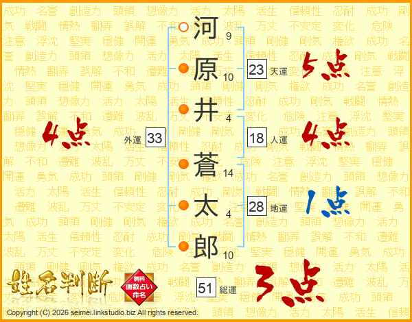 河(9画)原(10画)井(4画) 蒼(14画)太(4画)郎(10画)