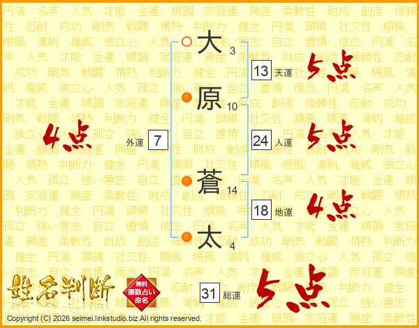 大原蒼太さんの総運は31画の5点!