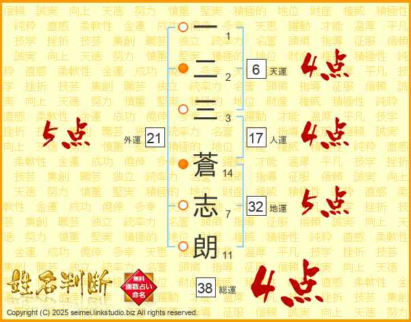 一(1画)二(2画)三(3画) 蒼(14画)志(7画)朗(11画)