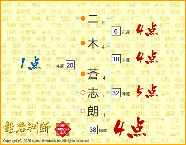二(2画)木(4画) 蒼(14画)志(7画)朗(11画)
