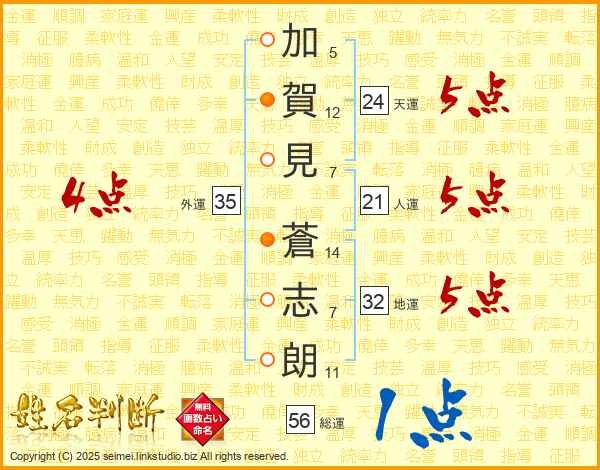 加賀見蒼志朗さんの総運は56画の1点!