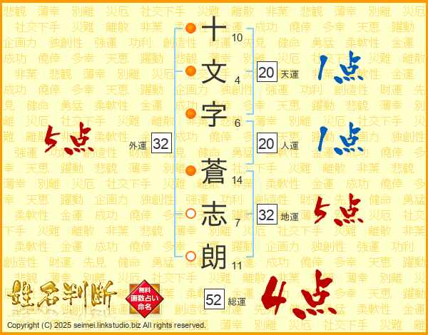 十文字蒼志朗さんの総運は52画の4点!