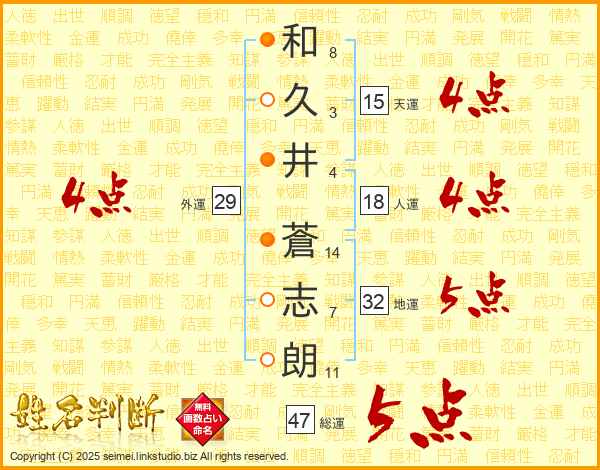 和久井蒼志朗さんの総運は47画の5点!