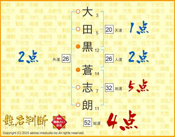 大田黒蒼志朗さんの総運は52画の4点!